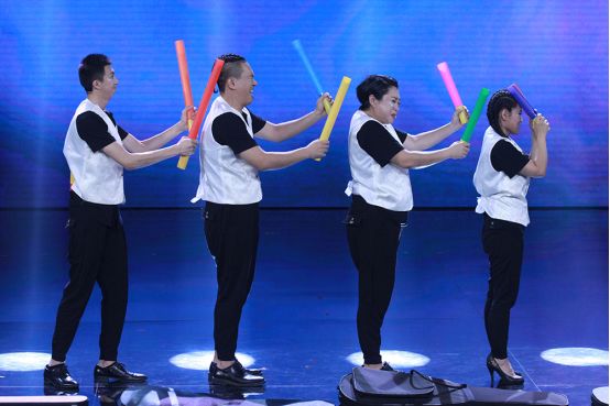 他们手中的塑料棒十分神奇,能通过敲打人体发出不同音调的声音,当大家全部开始击打的时候,声音合在一起竟然能组成一首完整的乐曲,成员们搞笑的肢体动作更是让观众们哈哈大笑!看到塑料管也能演奏,潘长江大感新奇,更听乐团成员说这塑料棒击打在人体上音色最好,于是忍不住要拿苗阜练练手啦!
