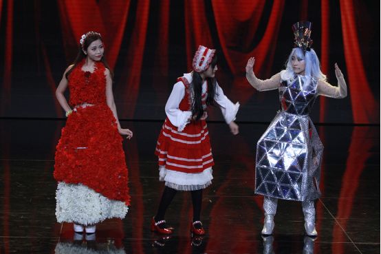 于是,饰演小狗、小狮子、铁皮人和皇后的队员们决定联手给她一点颜色,她们穿上了最华丽的演出服,小狗和小狮子可爱娇俏,铁皮人和皇后则身着大红色、银色礼服裙艳光四射,四个人全身是戏,生生把自己抬成了舞台上的焦点!这场C位争夺大战,不要太精彩!