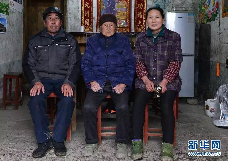 井冈山市茅坪乡神山村贫困户张成德(左)和家人合影(2月2日摄)。新华社记者 万象 摄