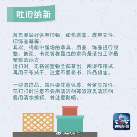 今天是南方“小年”,该准备过年啦!“腊月二十四,掸尘扫房子”,要开始新春扫尘了。因“尘”与“陈”谐音,意味着“除陈布新”。你的屋子多久没打扫了?这里有打扫卫生的知识点,赶紧学习行动起来,把灰尘扫出门,以一番新气象迎新年吧!