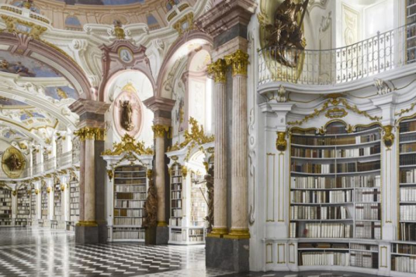 这座洛可可风的图书馆,华丽至极,尤其是内部装饰,更是美得眩晕。更为特色的是,大理石支柱和雕塑都漆成木纹状。它同时还拥有着全球图书馆中最为复杂的暗门。