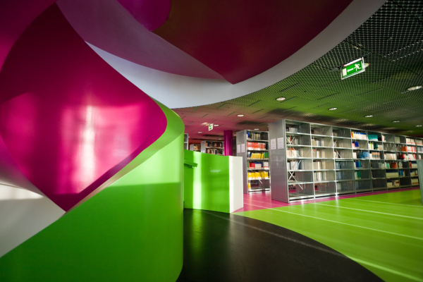 科特布斯图书馆由瑞士知名设计公司和尔佐格德梅隆设计,因色彩的明丽和混凝土螺旋楼梯而闻名。这座如同堡垒一样的建筑,极具视觉冲击力。而且各层的平面设计都是不一样的,这样满足了不同群体的差异化需求,从而备受欢迎。