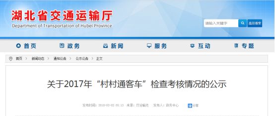 湖北省交通运输厅公布了
