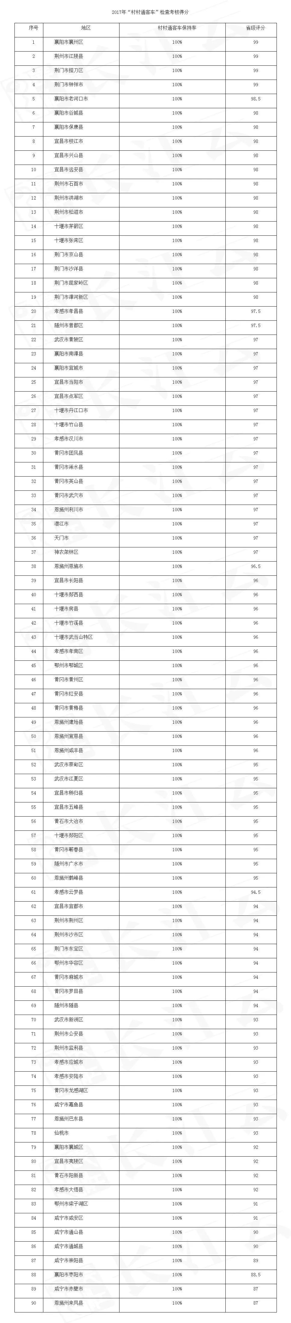 2017年湖北“村村通客车”检查考核成绩单公布!排第一的是……