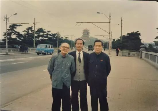 1985年,汤子炳与同学张培刚、黄永轼在黄鹤楼前合影