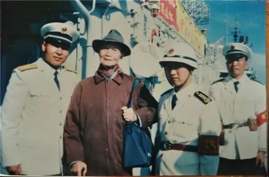 1997年,汤子炳在哈尔滨号军舰与政委夏克伟合影