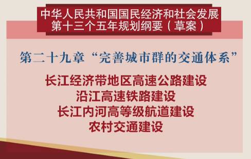 《十三五规划纲要(草案)》第二十九章“完善城市群的交通体系”把“沿江高速铁路建设”” 长江内河高等级航道建设”等交通建设项目列入“交通建设重点工程”。湖北一直致力建设”祖国立交桥”, 《十三五规划纲要(草案)》给“九省通衢”的湖北带来新的发展契机。