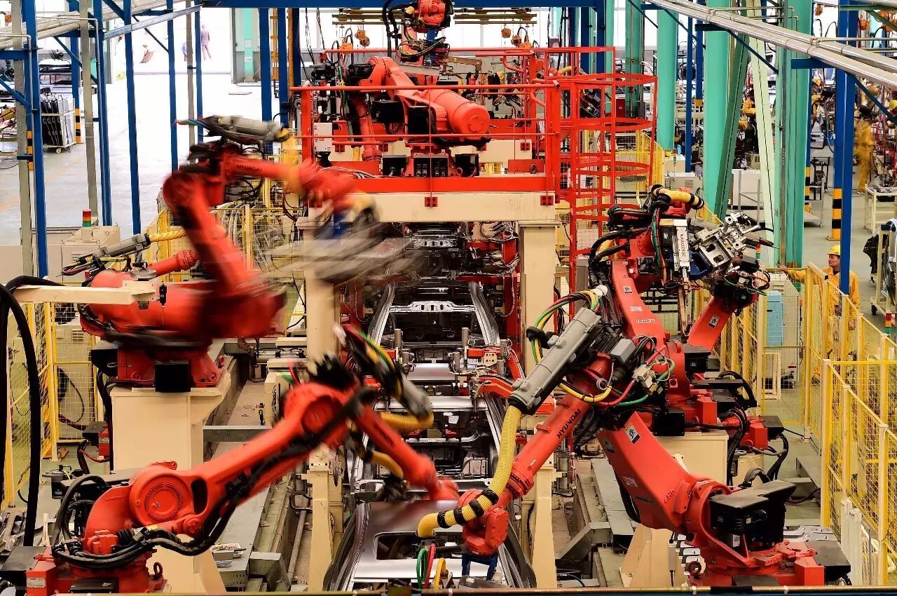 ↑2015年11月14日,威海南海新区德瑞博新能源汽车生产车间,工业机器人在进行焊接作业。 新华社记者 郭绪雷 摄