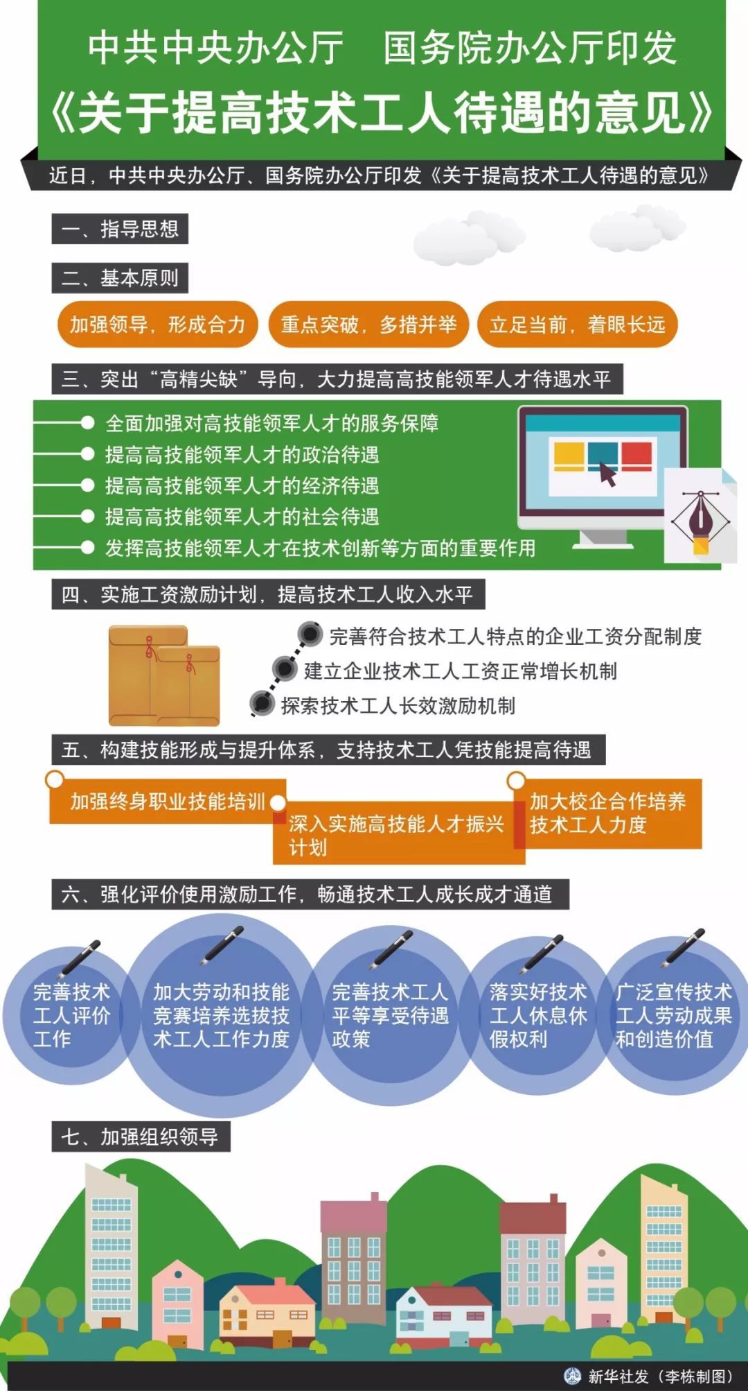 近日,中共中央办公厅、国务院办公厅印发了《关于提高技术工人待遇的意见》,并发出通知,要求各地区各部门结合实际认真贯彻落实。