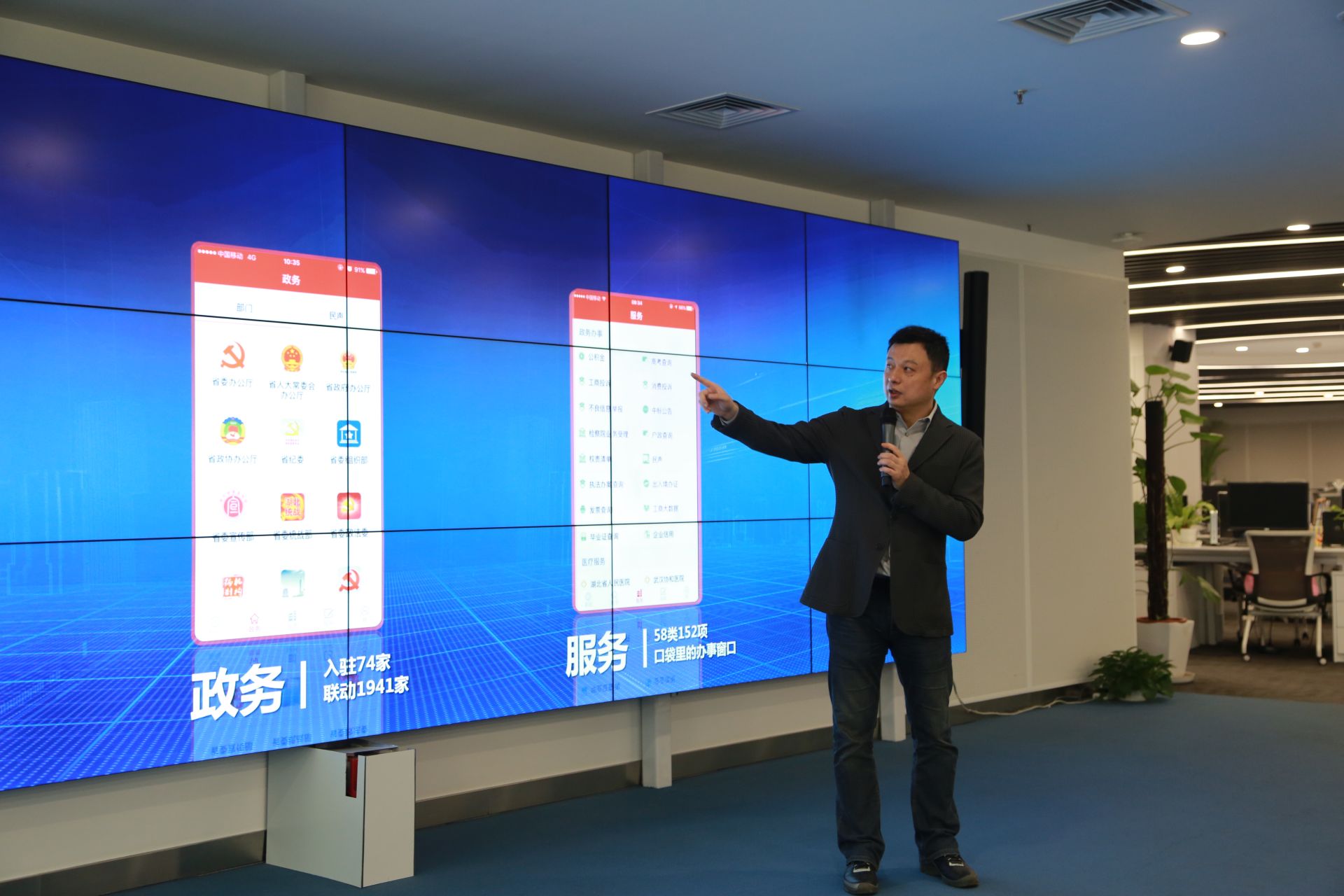 湖北长江云新媒体集团副总经理李鹏展示长江云APP、长江云舆情产品。