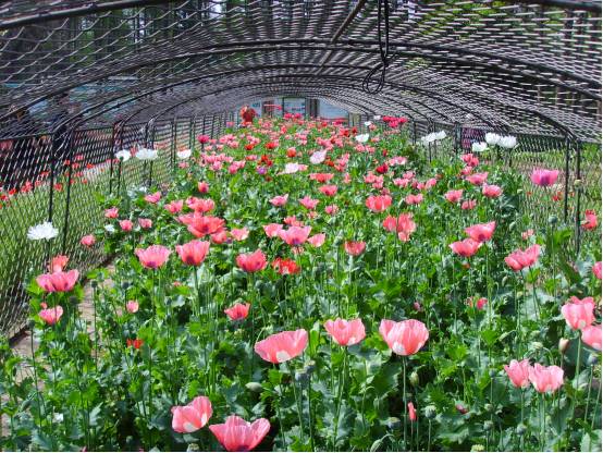 罂粟花被称为邪恶之花,它的果实虽然有毒,但是花却是冶艳美丽,明艳无比。中科院武汉植物园是我省唯一的活体罂粟戒毒教育基地,2001年,武汉植物园受公安部特批种植罂粟,这些活体罂粟主要用于科普教育和研究。目前,这些罂粟的数量已经达到千余株。这些罂粟用铁栏围住,种植的罂粟是在全封闭的状态下供游人参观。游人不会与罂粟有直接接触,只能通过透明的护网看到罂粟。铁栏之外则是和罂粟外形十分相似的虞美人。