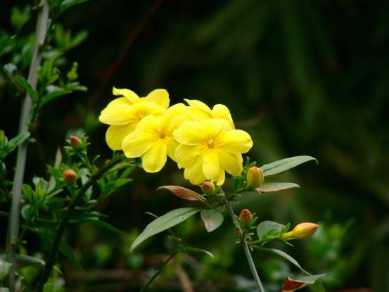 虽然不是最早开放的花,但是人们还是认为迎春花明媚亮丽的黄带来的是春天的第一抹颜色。细长的花枝上长满花朵,花枝柔软下垂,枝蔓荟萃,十分繁茂。武汉植物园的迎春花,还有外形与迎春花非常相似的金钟花多种植在水边,花带长达几百米,花朵在湖边对镜梳妆,娇花照水,不胜娇羞。