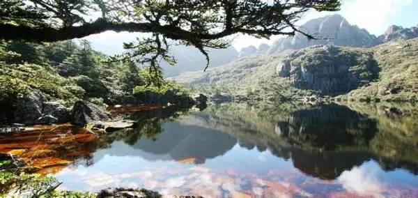 蓝天白云、逶迤群山、巍峨大坝、葱郁树木、澄澈江水。