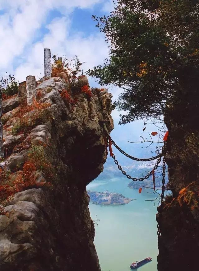 三峡链子崖景区位于长江西陵峡南岸,屹立于兵书宝剑峡和牛肝马肺峡之间,因“链子锁崖”而得名。在神秘的北纬30°线上,西陵峡兵书宝剑峡峡口,有一座布满裂缝的大山壁立大江,这就是名闻遐迩的链子崖。