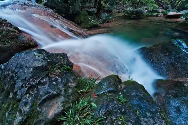 这里有赤、橙、黄绿、青、蓝、紫,如彩虹当空的“七彩瀑”,晶光闪烁,福祥之气溢满山野——香水河风景区