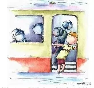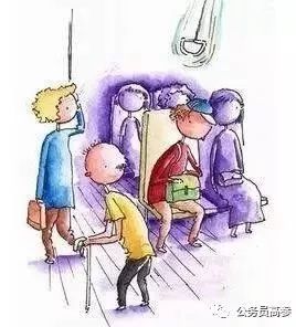 有的同志很倒霉,即使全车的人都坐下了,他还站着。