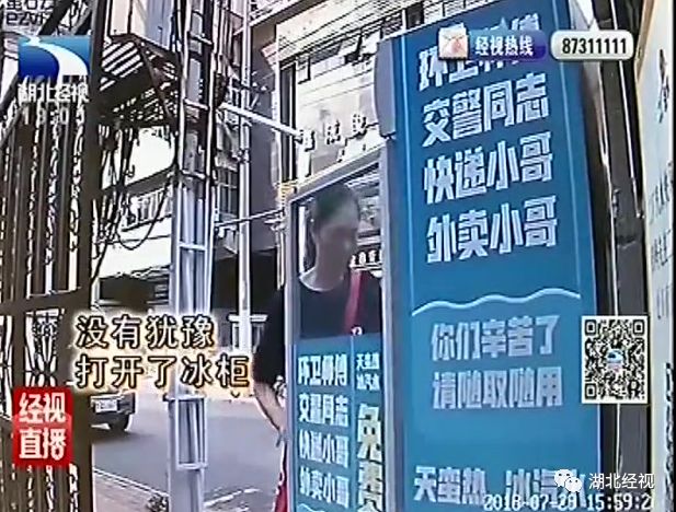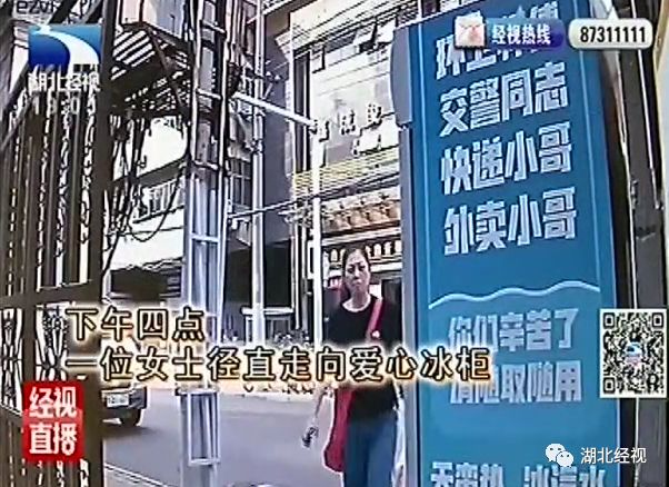 下午四点左右,一位女士径直走向爱心冰柜