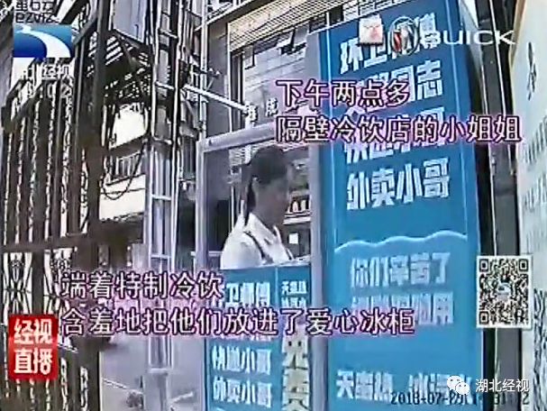 下午两点多,隔壁冷饮店的小姐姐端着特制冷饮,悄悄的放进爱心冰箱。