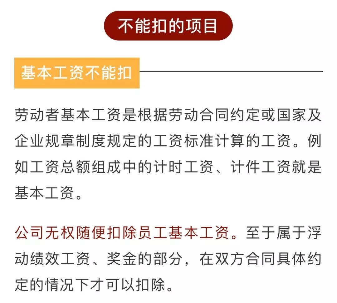 工资是你一个月劳动成果的体现,该扣的项目涉及你的权益,是必须要扣的。而一些不能扣的项目,绝对不能扣。