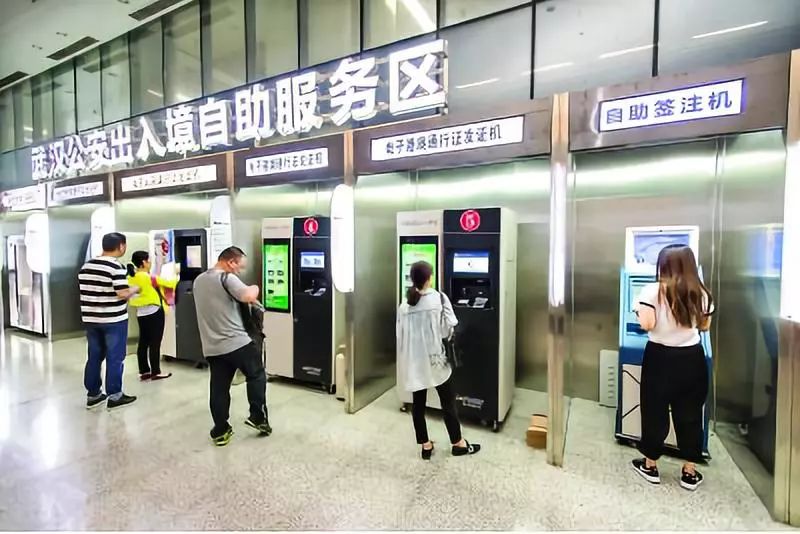 市民在武汉市民之家的出入境自助服务区办理手续 新华社记者熊琦 摄