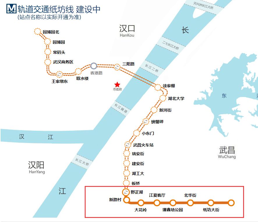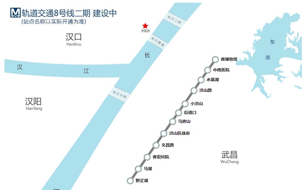 武汉地铁2号线南延线、8号线三期、纸坊线和蔡甸线。