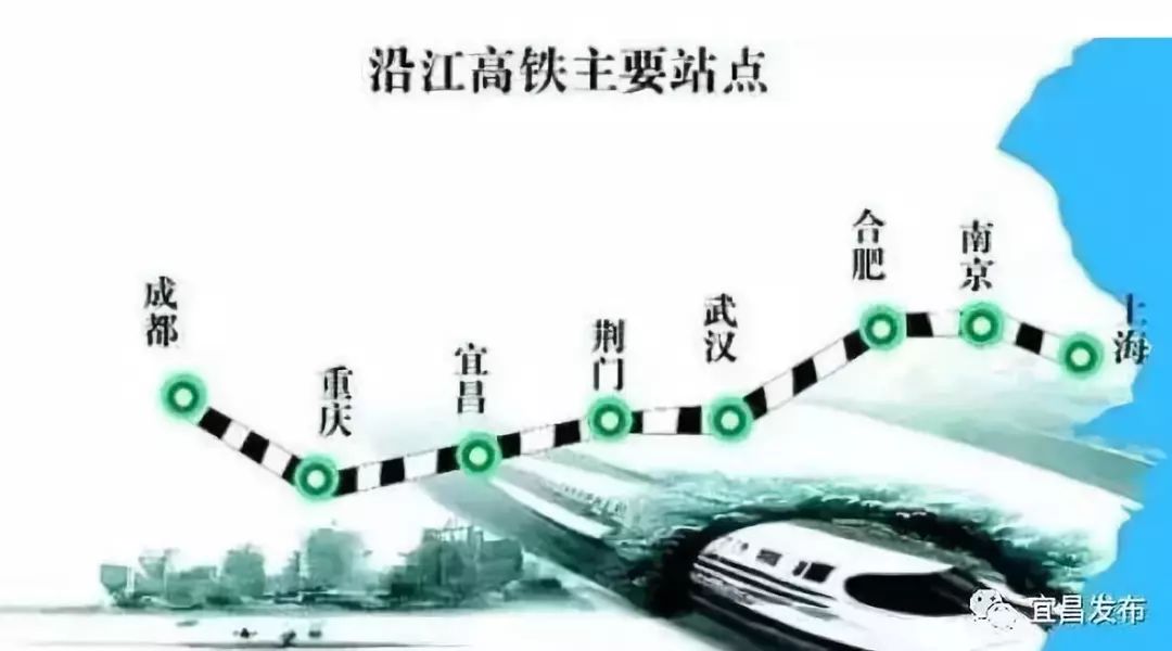沿江高铁由成都—重庆—万州—宜昌—荆门—武汉—合肥—南京—上海构成,全线为设计时速350公里高速铁路。
