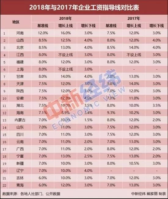 公布了2018年企业工资指导线
