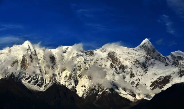 喜马拉雅山脉东段最高峰,藏语意思为“刺向蓝天的战矛”。南迦巴瓦不是以其势逼蓝天的伟岸,变幻莫测的气候才著称于世的,更多原因是其难得一见的神秘面容。