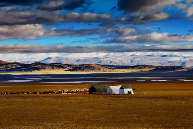 这里有翻滚的云、粼粼的水波、连绵的群山和一望无际的辽阔草原,气候温和,风平日丽,特别是八月里举行的盛大那曲赛马会更增添了一份悠扬与豪情。