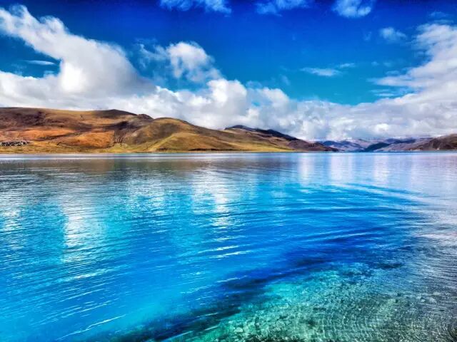 羊卓雍错与纳木错、玛旁雍错并称西藏三大圣湖,藏语意思为“碧玉湖”。羊湖景色之美,冠绝藏南,当地藏人用民歌赞美这里:天上的仙境,人间的羊卓。天上的繁星,湖畔的牛羊。