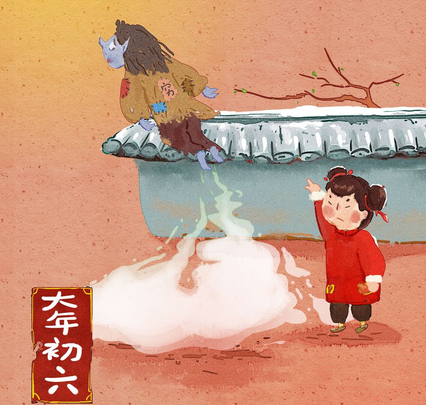 古时候,自进入正月以来,人们一直不能打扫,所以厕所中的粪便堆积,于是初六这一天要做大扫除,并祭拜厕所中的神明,将平日污秽的厕所清扫干净称为“挹肥”。正月初六“送穷”,代表着送走旧日贫苦,迎接新一年的美好,也寄托了人们消灾免祸趋吉避凶的美好愿望。