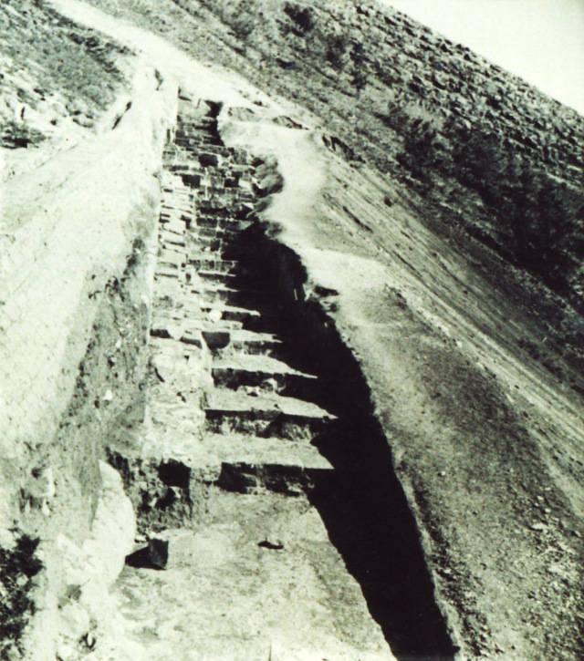 考古队员在炸开石条的地方勘探挖掘后发现,这些石条是台阶的一部分。而且,沿着石阶继续勘探,可以发现一条墓道。墓道从规模到设计,都跟唐代文献中有关乾陵地宫“其门以石闭塞,铸铁水以固牢”的记载完全吻合。可以肯定,这个地方就是乾陵地宫的墓道口。这个深埋在地下的入口从外面看不出半点痕迹,这也正是千年来人们都找不到它的原因。
