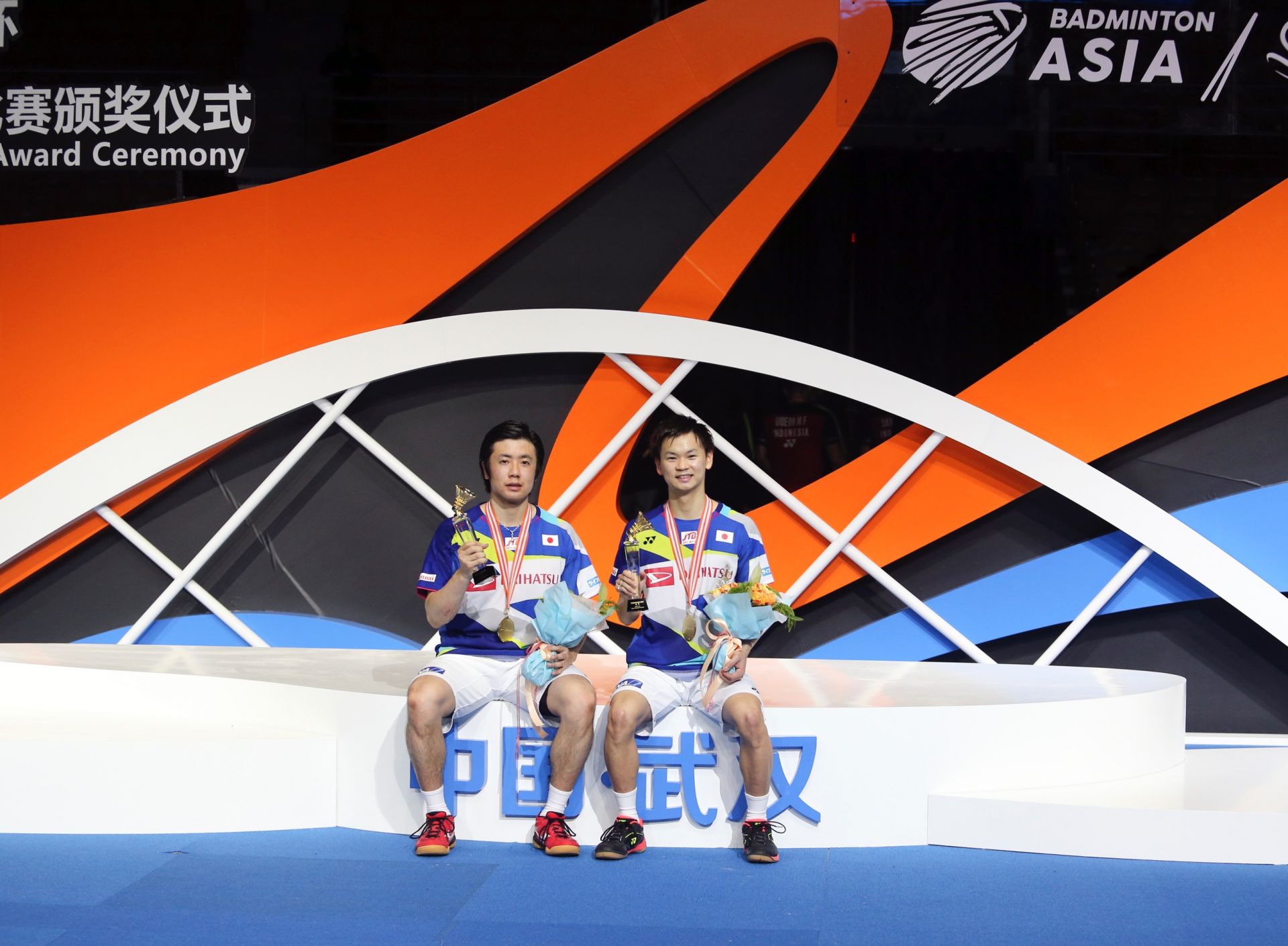 男双决战压轴上演。来自印度尼西亚的头号种子吉迪恩/苏卡姆约对阵日本组合远藤大由/渡边勇大。此前的两次交手印尼保持不败。日本组合以扎实的防守和耐心著称,今天的比赛中,这一点得以完全展现。首局比赛,日本组合取得领先,在印尼组合7-7追平后,双方比分交替上升。随后苏卡姆约出现频繁失误,21-18,日本组合拿下首回合。第二局开始后,日本组合顶住对手连续下压并形成反击拿下一分。随后,印尼选手一蹶不振,最终远藤大由/渡边勇大以21-3战胜对手摘夺男双金牌。
