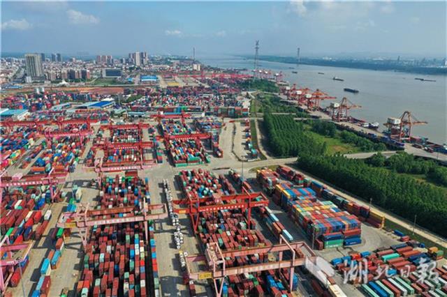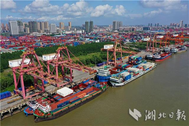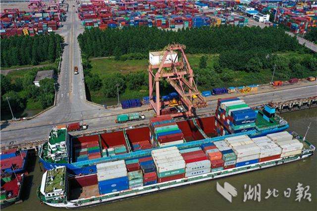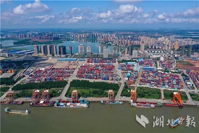 2019年5月26日,雨后放晴的武汉新港阳逻港区一片繁忙。