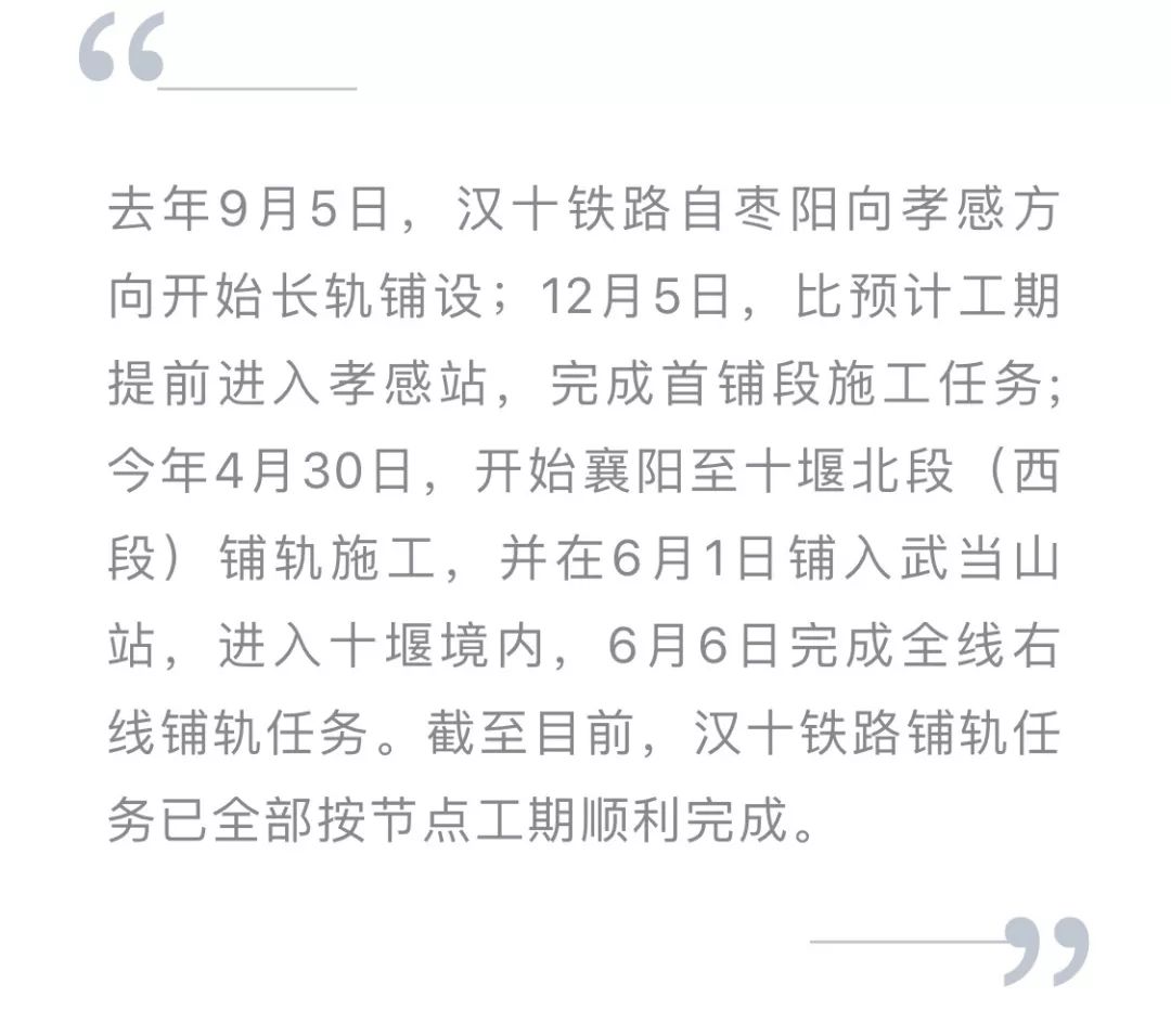 刚刚!汉十高铁铺轨全线贯通 ,预计今年年底通车运营!