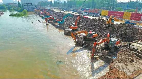 为了加速南湖水流下泄,南湖连通港至青菱湖约5公里长的巡司河河面宽度将拓宽至50米。同时,位于江夏金港新区长江边的海口泵站,两台机组正在全力抽排,源源不断地将野湖湖水输送至泵站,在短短两天里,就已抽排湖水约100万立方米。同一水系的青菱湖、黄家湖等湖泊的水就可以更多地进入野湖,为南湖水腾出更多下泄空间。除外围打通沟渠,加快汤逊湖水系导水、排水速度外,洪山区水务局连夜从天津、南京及武汉市各城区征调25台大型移动抽排设备前来排渍抢险。截至到10号,中央花园和温馨苑两个小区渍水基本排干。