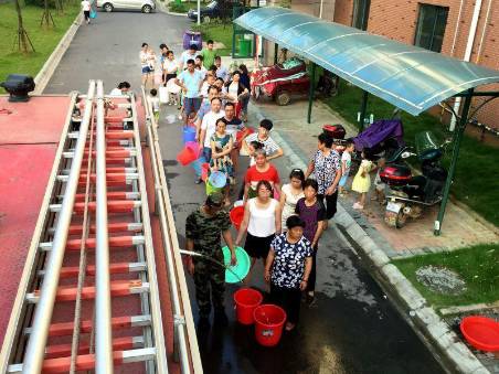 因为山体滑坡致使供水主管毁损严重,咸宁市咸安城区中断供水,温泉城区水压低下,共造成20万多居民没有水吃。咸宁消防官兵日夜送水,为居民解燃眉之急。同时,咸宁对滑坡进行清理,水务公司紧急抢修水管,今天下午五点,停水区域恢复供水。