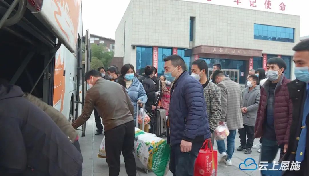 3月16日,恩施市首批52名“点对点, 一站式”输送外出返岗复工人员出发至浙江丽水。目前,恩施市人社部门已经摸排出全市共有55000多人有外出返岗复工的意愿。下一步,恩施市将以乡镇为单位,每满20人统一包车,以“点对点,一站式”方式,组织输送复工人员外出返岗复工。