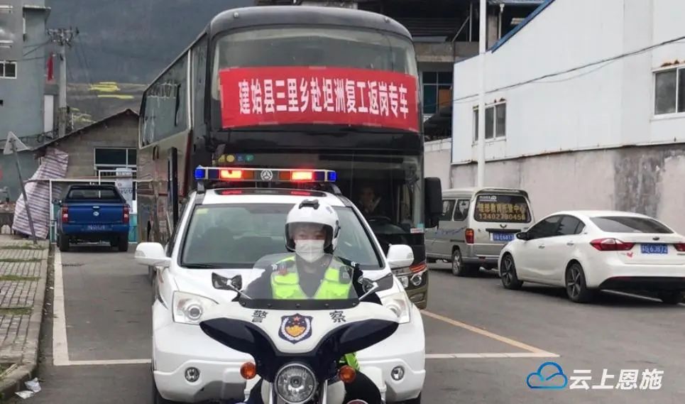 3月16日下午,建始首趟为返岗农民工订制的2台专用客车,载着该县51名符合疫情防控出行条件的外出务工人员,分别从三里乡、高坪镇起程,奔赴广东省中山市坦洲返岗复工。