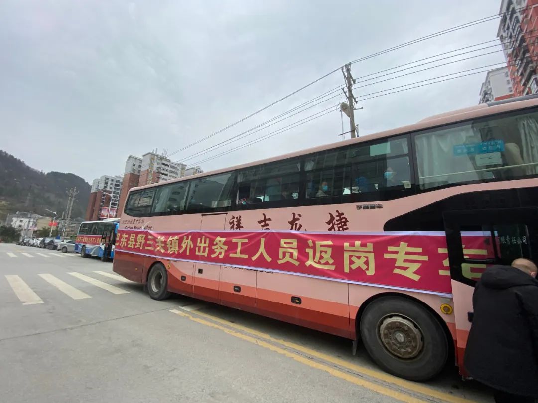 3月16日,巴东县野三关镇38名返岗人员统一乘坐专车,出发前往东莞市。随车同行的还有野三关镇人社中心、派出所、巴东县第二人民医院的工作人员,他们为返岗人员全程提供生活和医疗服务。