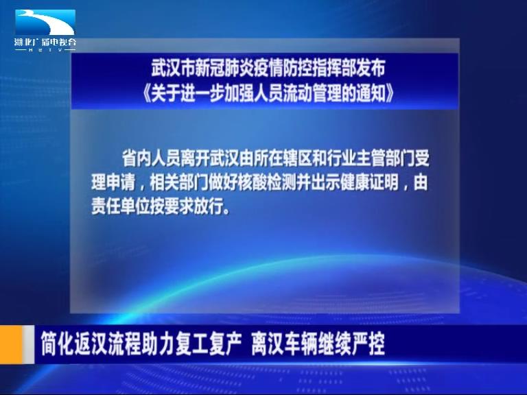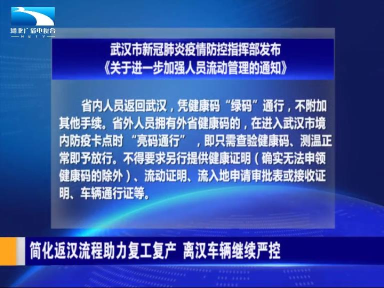 简化返汉流程助力复工复产 离汉车辆继续严控