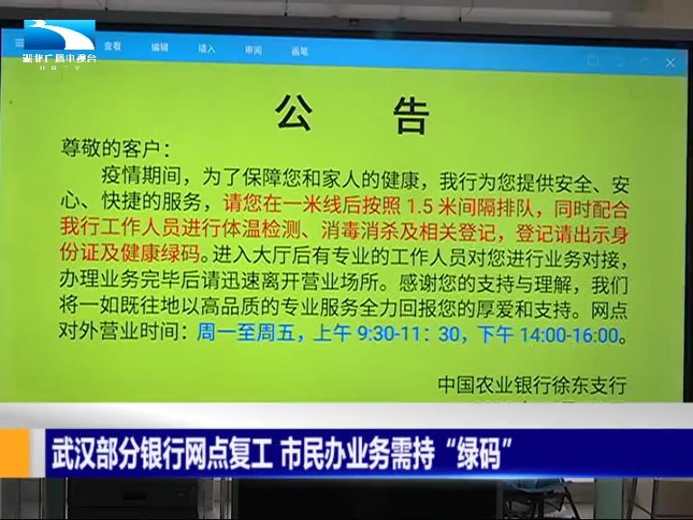 武汉部分银行网点复工 市民办业务需持“绿码”