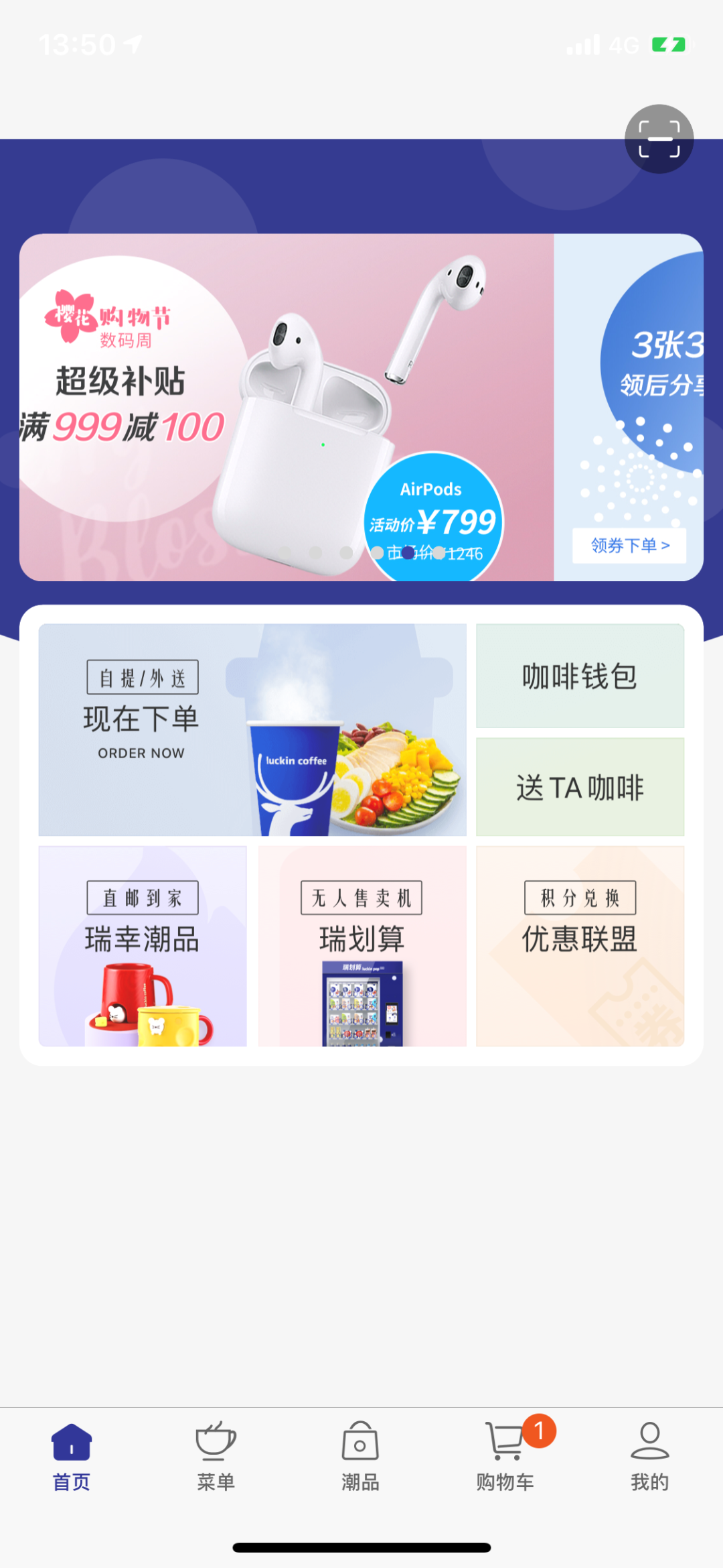 4月3日中午,不少网友发现瑞幸咖啡APP和小程序崩了。