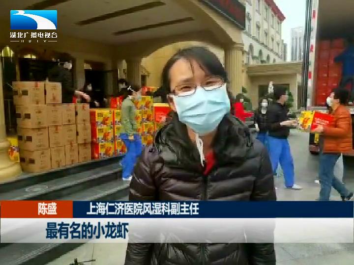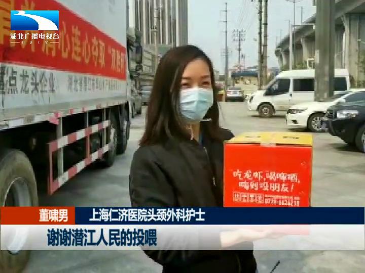 上海仁济医院头颈外科护士 董啸男说,“谢谢潜江人民的投喂,我们很喜欢小龙虾。"