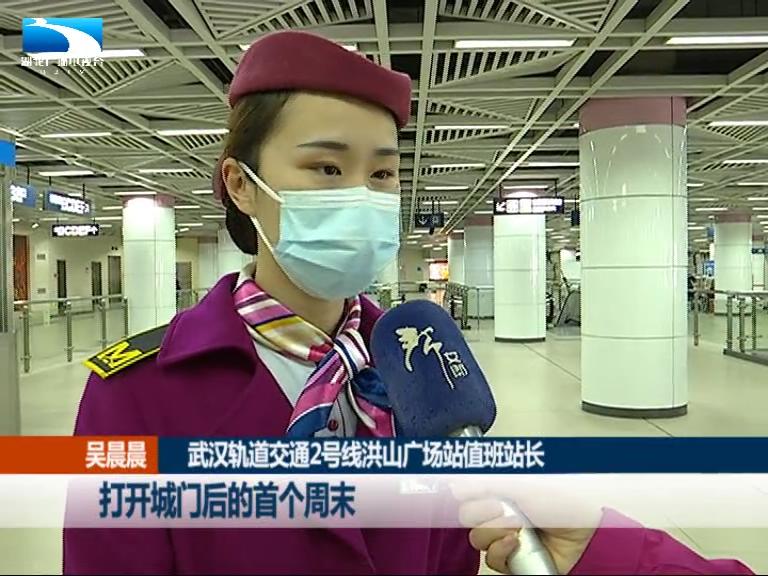 武汉轨道交通2号线洪山广场站值班站长 吴晨晨:打开城门后的首个周末,其实客流量还是很平稳的,相比工作日的话要少很多。建议市民依然守在家里面,非必要不外出。