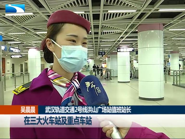 武汉轨道交通2号线洪山广场站值班站长 吴晨晨:在三大火车站及重点车站,都放置了免洗洗手液。在乘客经常接触的售票机、刷卡进闸的闸机,及扫码异常乘客处理的位置,都放置了专门的洗手液。