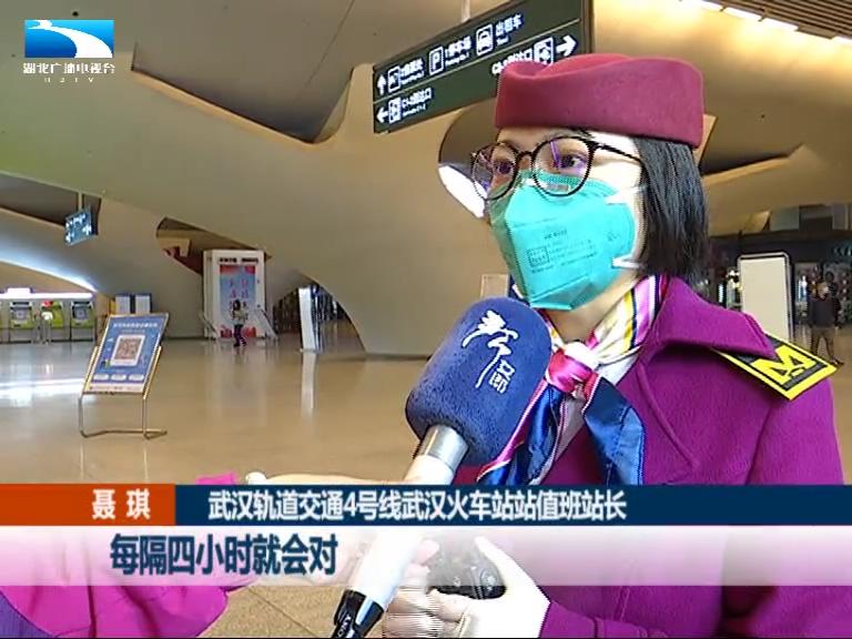武汉轨道交通4号线武汉火车站站值班站长 聂琪:每隔四小时,就会对所有的乘客经常接触的自助售票机、闸机、乘客座椅进行消毒。每一趟车回来,我们的车洁阿姨都会上车,对车进行深度消毒。