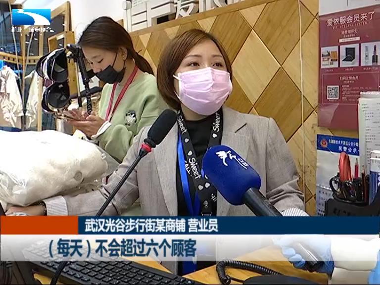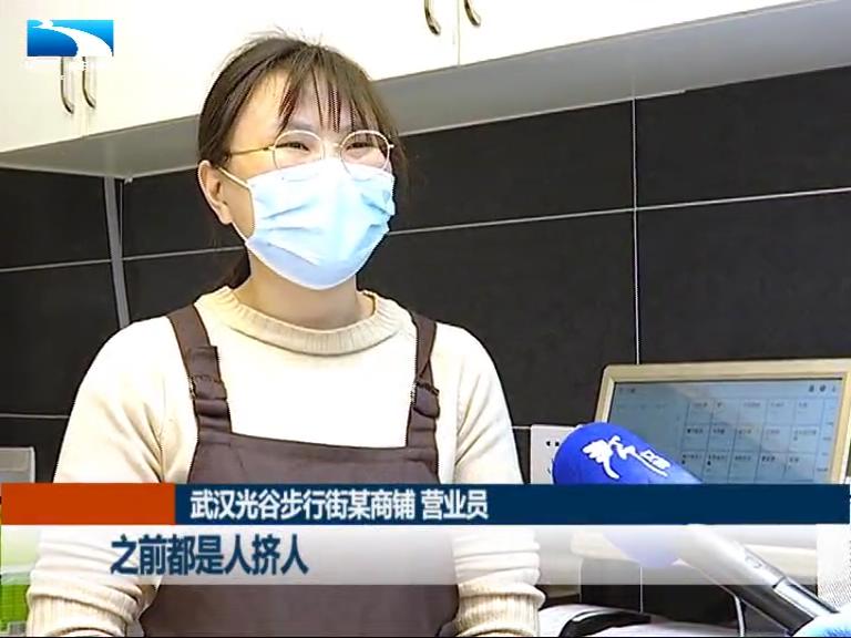 武汉光谷步行街某商铺 营业员:之前都是人挤人,大家走路的时候肩膀挨肩膀,你看现在冷冷清清的。但慢慢就会好的,慢慢来。
