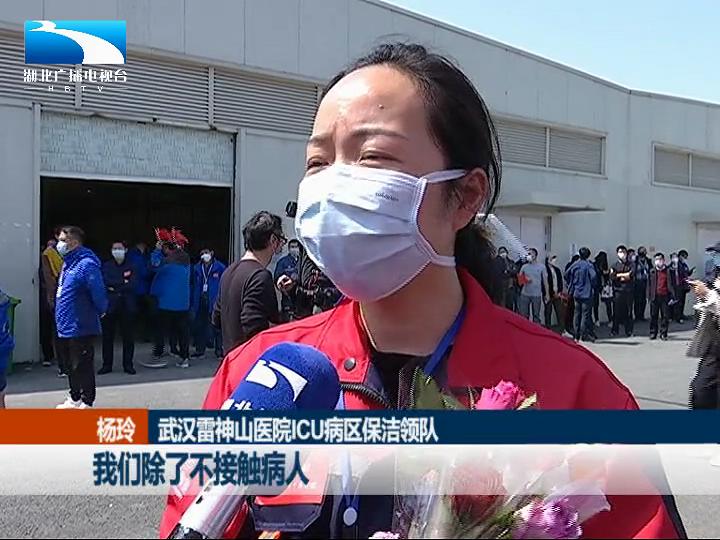 武汉雷神山医院ICU病区保洁领队 杨玲:我们除了不接触病人,但是我们会接触到病人的排泄物、呕吐物,和他们产生的一些医疗废物。我是武汉人,因为当时看到那么多援汉医疗队都来了,我们最起码在医疗队的面前,我们不能丢武汉人的脸。做的时候就没有想那么多,觉得只要手套没有破,只要全副武装,没有皮肤露出来,应该是安全的。