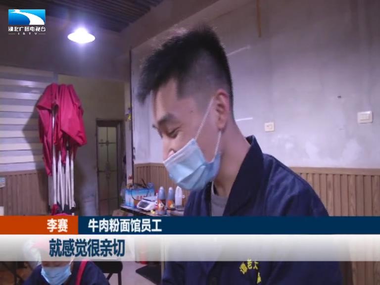 牛肉粉面馆员工 李赛:就感觉很亲切,像回到家一样。